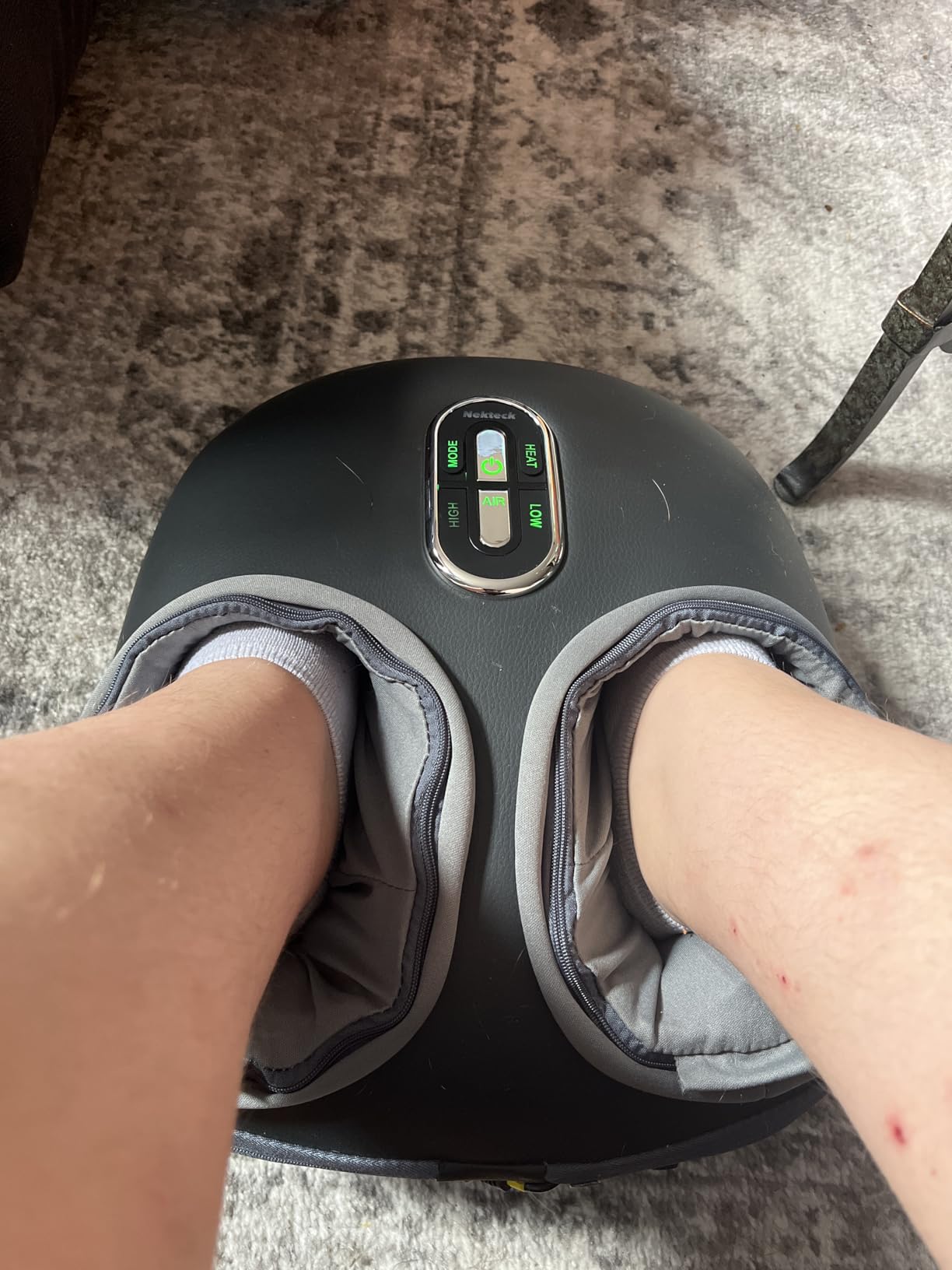 Yes. Air compression has two intensity levels (Low/High). If you’re new to deep massage or have sensitive feet, start on Low and consider wearing thick socks.